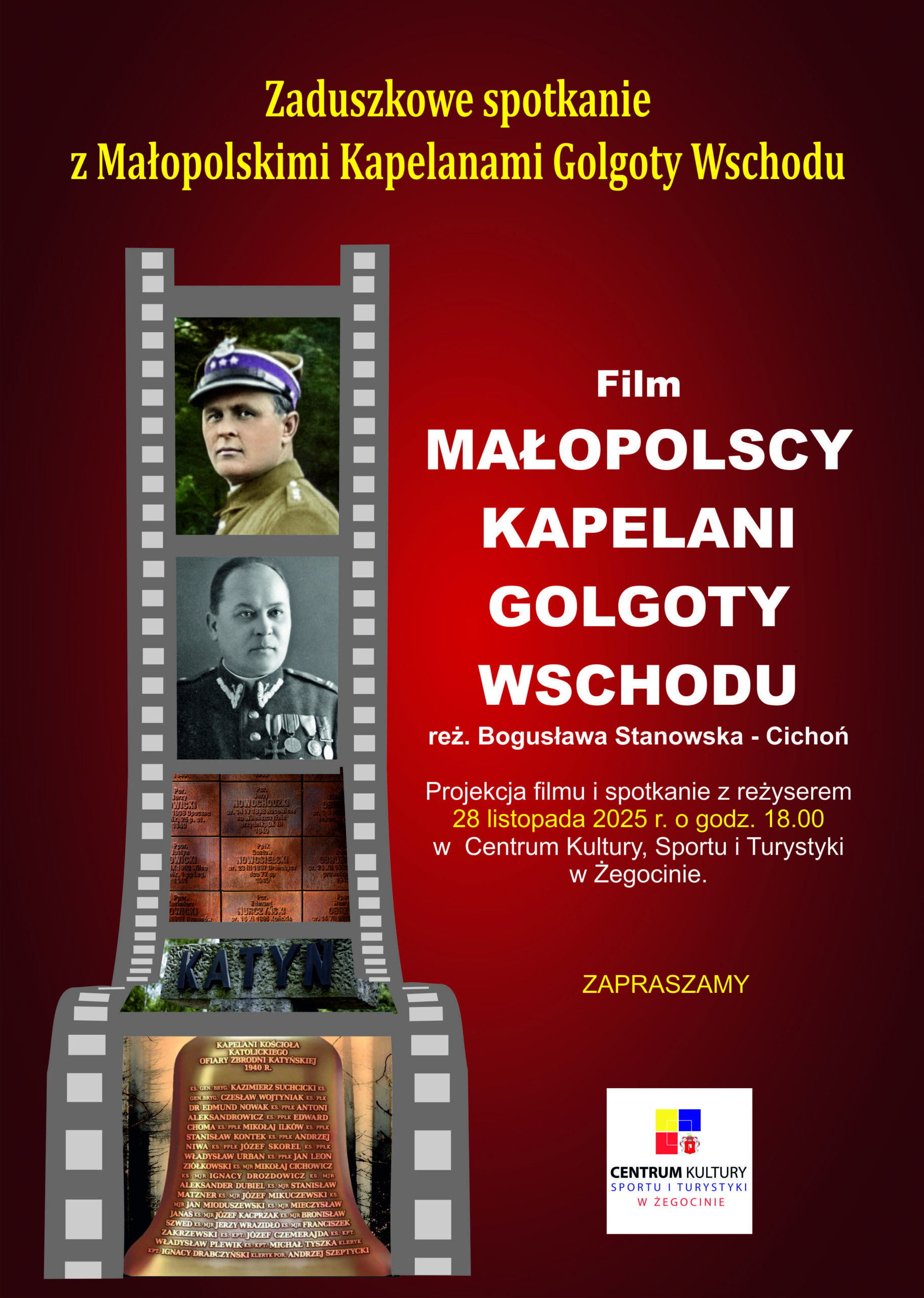 Serdecznie zapraszamy na wyjątkową projekcję filmu „Małopolscy Kapelani Golgoty Wschodu” w reż. Bogusławy Stanowskiej-Cichoń.