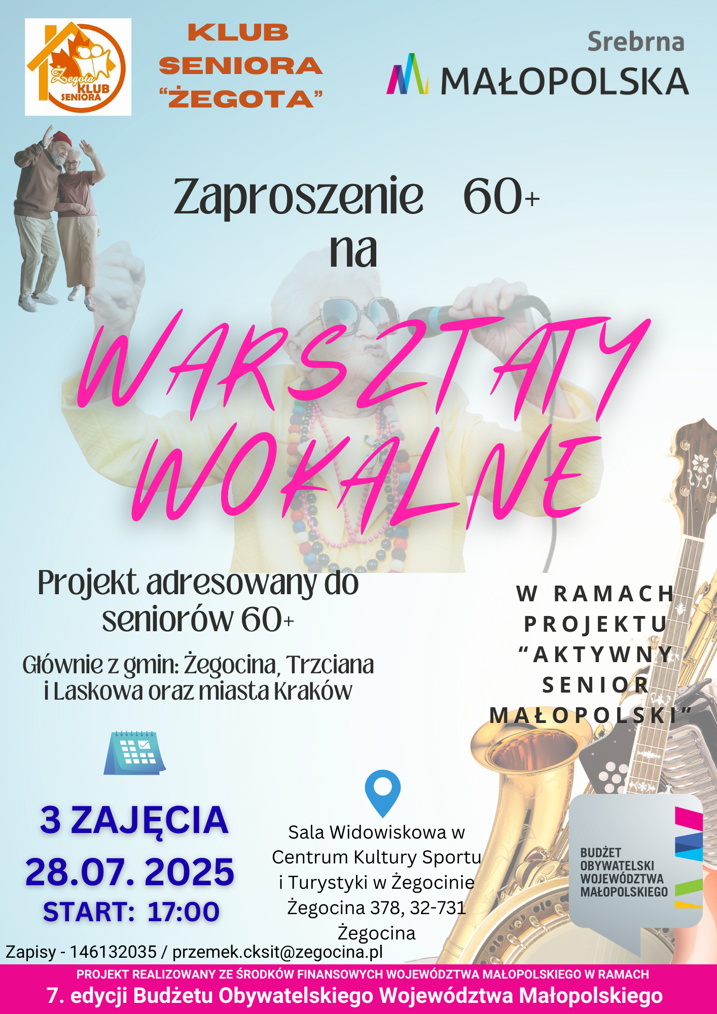 Zapraszamy serdecznie na Warsztaty Wokalne dla Seniorów 60+, które odbędą się: