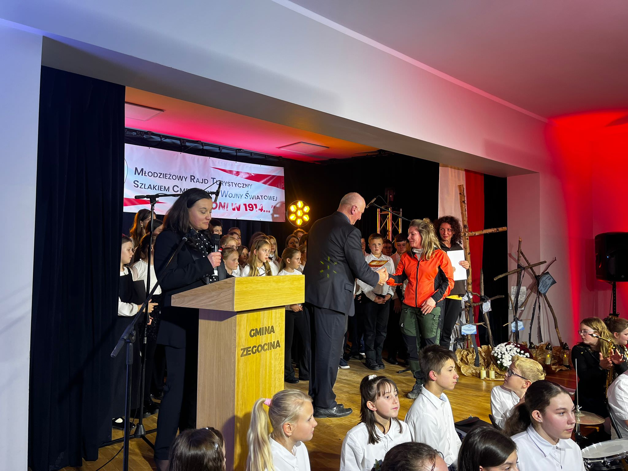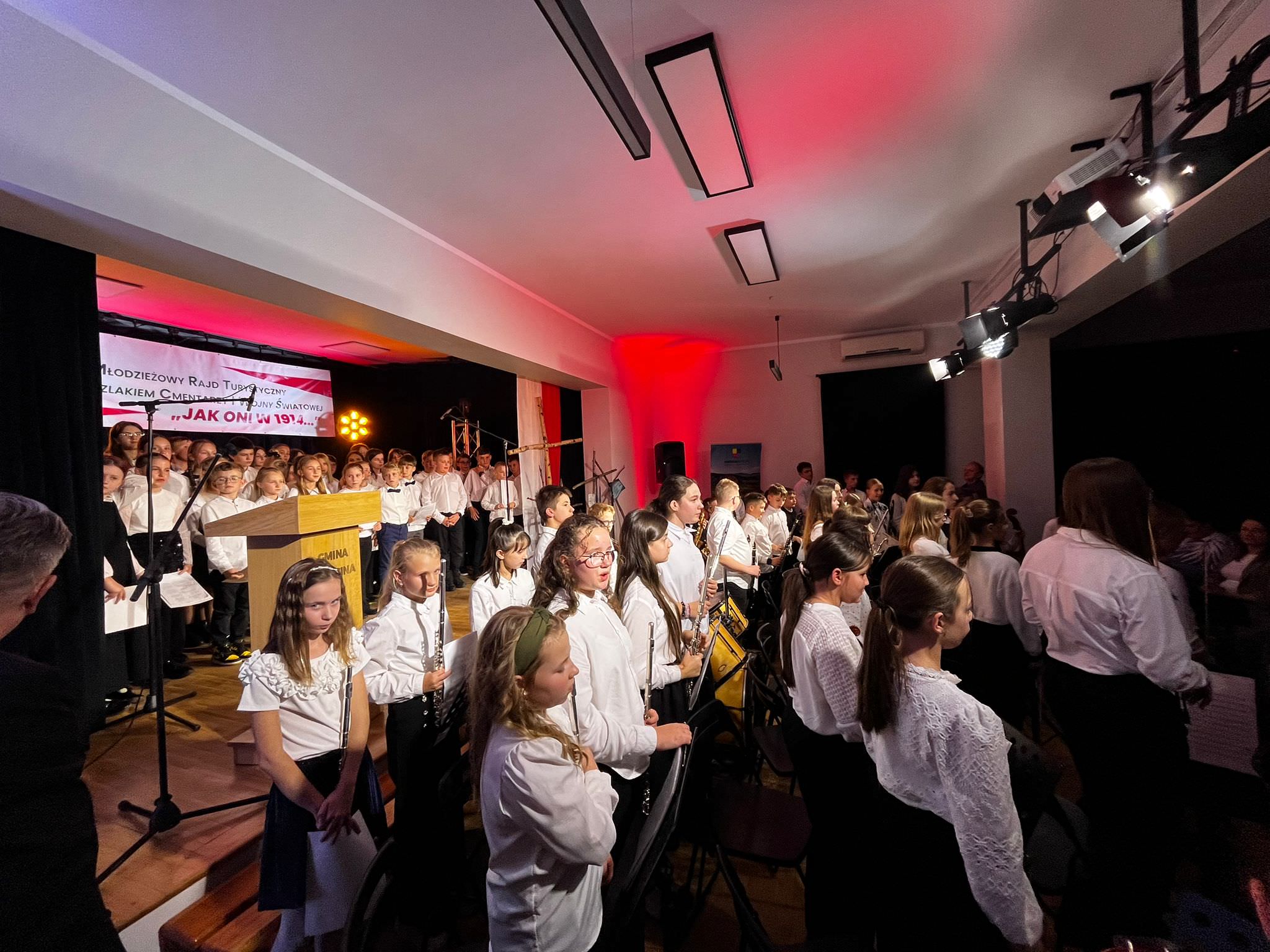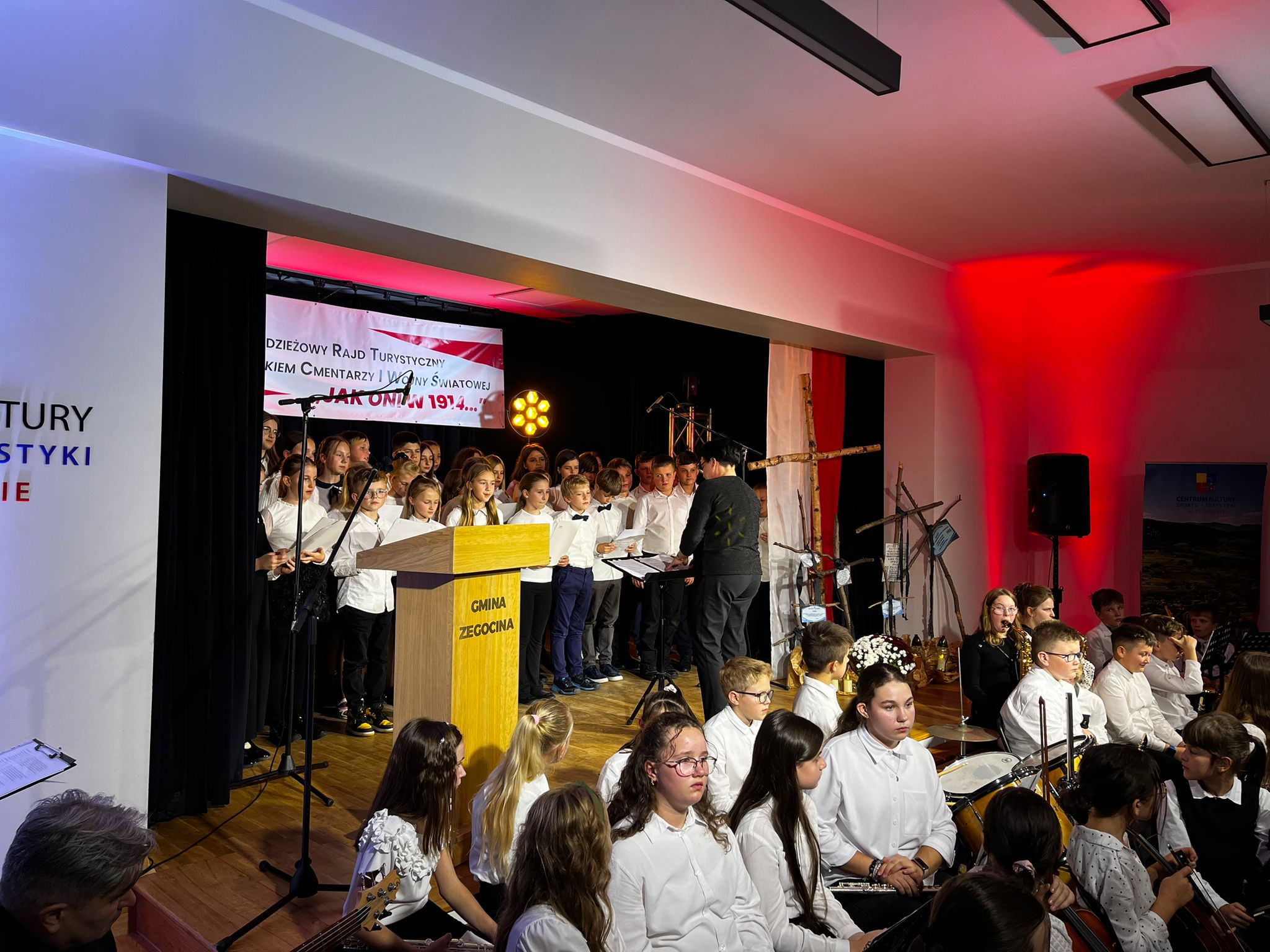 Szczególnie wzruszającym momentem była prezentacja multimedialna Małgorzaty Mikołajek, przybliżająca wydarzenia sprzed ponad stu lat. Następnie rozpoczął się koncert patriotyczny w wykonaniu uczniów Szkoły Muzycznej I stopnia w Żegocinie i Laskowej pod kierownictwem Dyrektora Tomasza Cudejko. Wystąpiła kilkudziesięcioosobowa orkiestra pod batutą Bogdana Tomali, której występ spotkał się z ogromnym aplauzem publiczności.