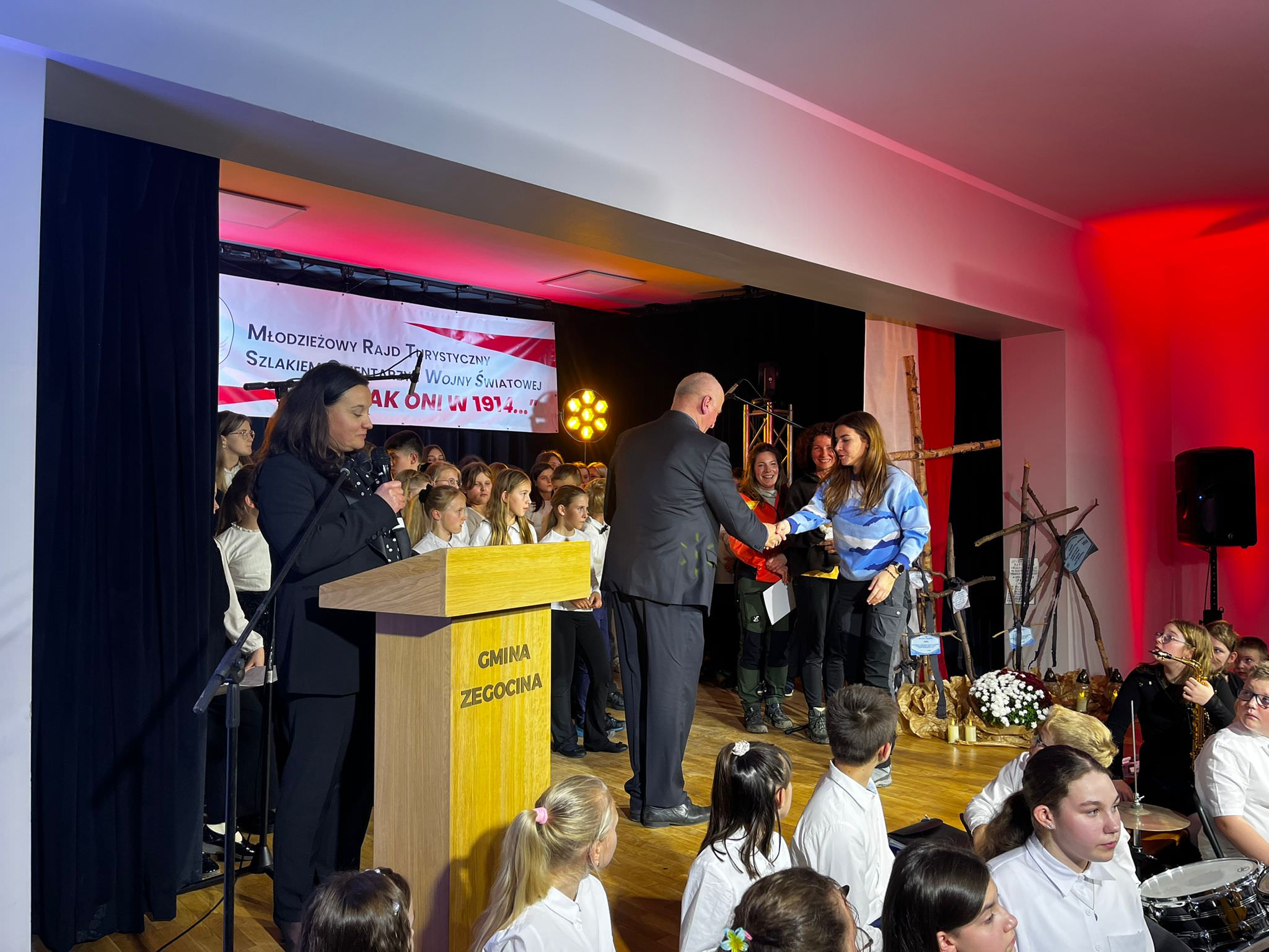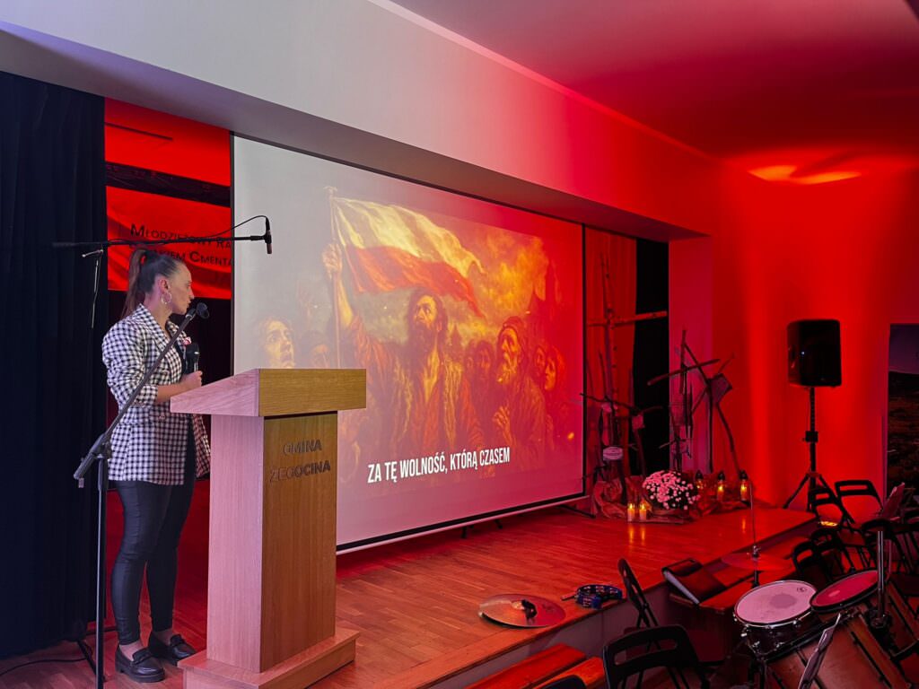 Po odpoczynku młodzież wraz z opiekunami udała się na salę widowiskową, gdzie odbyła się uroczysta część artystyczna. Wydarzenie otworzyła Dyrektor CKSiT w Żegocinie – Magdalena Adamska-Urban, witając zgromadzonych uczestników, nauczycieli, dyrektorów szkół, przedstawicieli samorządów obu gmin oraz licznie przybyłych gości.