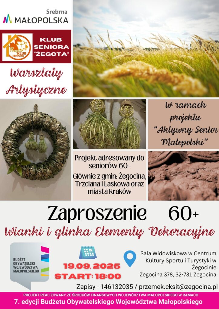 Zapraszamy seniorów – 60+ !! do zapisów i udziału w bardzo kreatywnych, a jednocześnie kolorowych warsztatach artystycznych,